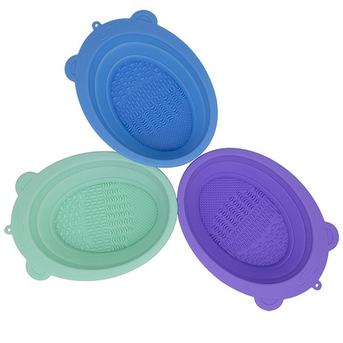 硅膠材質的碗,上面有三種不同的凸起,能照顧到每種化妝刷。