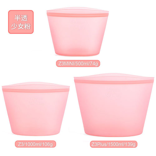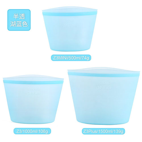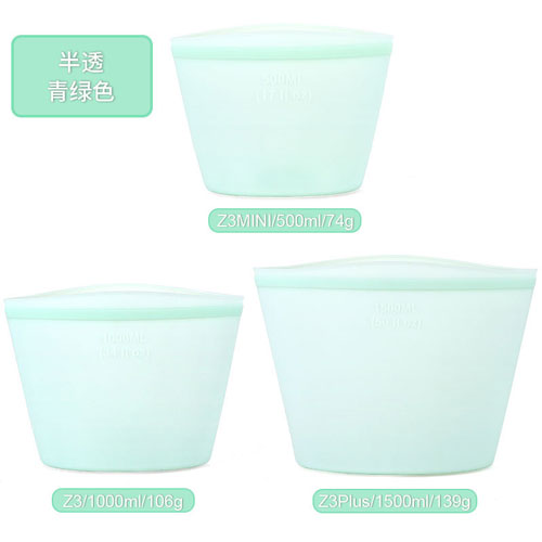 硅膠保鮮袋是采用食品級硅膠,易清洗,可在冰箱冷藏使用,也可以在微波爐使用。保鮮、可循環使用、環保耐熱耐冷。可承受-40°C~230°C, 可冷藏,可沸水加熱,可微波爐加熱。加厚食品級硅膠,采用食品級硅膠,用料厚實,鎖住新鮮。能重復使用,加厚材容大。保鮮密封防漏,抽拉密封桿,袋子柔軟貼合緊密,密封性強,采用食品級材質,安全無害,獨家設計,與硅膠切合度極高,能達到很好的密封的效果。抽拉密封桿,密封保鮮,防水防漏,真空密封。操作簡單,放進實物只需要將密封條輕輕-拉,即可輕松保鮮。